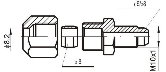 Redukcja do rurki Cu ø6/ø8mm Kpl., M10x1/G¼"