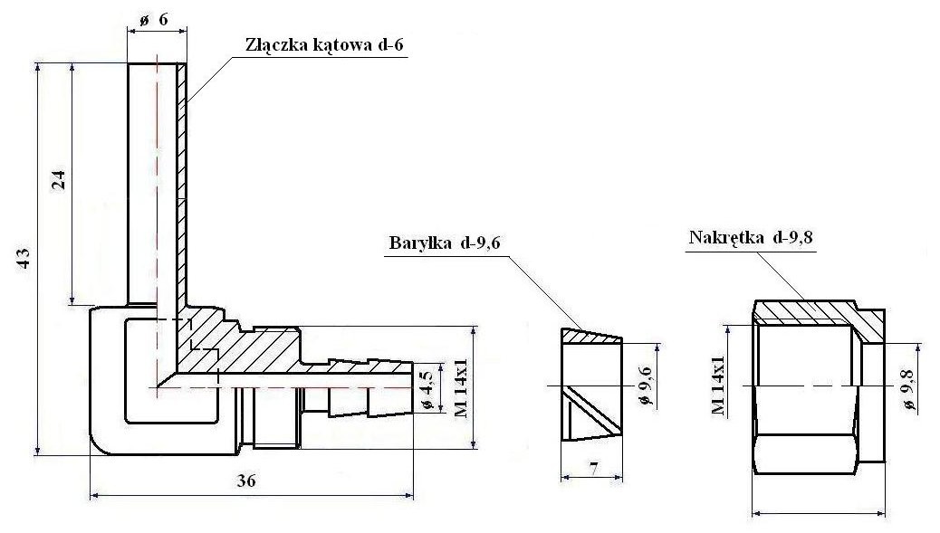 ZL-0025 Złączka kątowa do przewodu elastycznego Ø6
