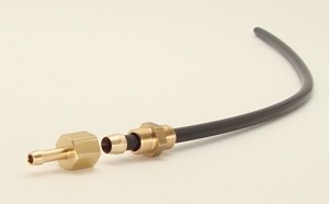 Dolot gazu Ø5mm. Komplet złączki w kolektor - M10x1, materiał: mosiądz + wąż o średnicy Ø5mm, materiał: poliamid