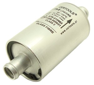 Zespół filtra fazy lotnej LPG i CNG, wielokrotnego użytku, z przedłużonym wkładem filtrującym, zaciskany z jednej strony. Wkład wymienny do wyboru: CF-109; CF-109-1; CF-109-2. Klasa 2. Ciśnienie klasyfikacyjne 450 kPa (LPG), 20-450 kPa (CNG), zakres temperatury pracy od -40°C do 120°C (LPG), od -40°C do 105°C (CNG). Filtr wykonany jest z aluminium. Orientacyjna długość filtra: 82 mm (bez króćców) i 125 mm (z króćcami). Wewnątrz umieszczony jest wkład papierowy, poliestrowy bez siatki, poliestrowy z siatką lub z włókna szklanego. Całość uszczelniona jest o-ringami. Średnica wlotu: 11, 12, 14, 16, 2x12 mm, wylotu: 11, 12, 14, 16, 2x12 mm. Podane średnice są wymiarami zewnętrznymi. Certyfikaty homologacji: E20-67R-010663, E20-110R-000031.
