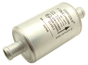 Zespół filtra fazy lotnej LPG i CNG, jednorazowy, zaciskany z obu stron, z przedłużonym wkładem filtra. Klasa 2. Ciśnienie klasyfikacyjne 450 kPa (LPG), 20-450 kPa (CNG), zakres temperatury pracy od -40°C do 120°C (LPG), od -40°C do 105°C (CNG). Filtr wykonany jest z aluminium. Wewnątrz umieszczony jest wkład filtrujący. Całość uszczelniona jest o-ringami. Średnica wlotu: 11, 12, 14, 16, 2x11 mm, wylotu: 11, 12, 14, 16, 2x11 mm. Certyfikaty homologacji: E20-67R-010663, E20-110R-000031.