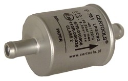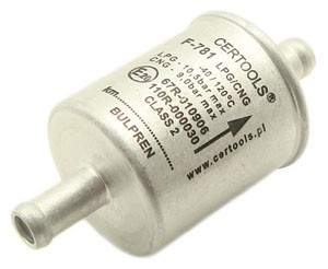 Jednorazowy zespół filtra LPG i CNG fazy lotnej, z wkładem z bulprenu, bibuły, poliestru lub z włókna szklanego, jednostronnie zaciskany. (Bulpren oprócz separowania pyłów pochłania (absorbuje) równiż olej/parafinę.)